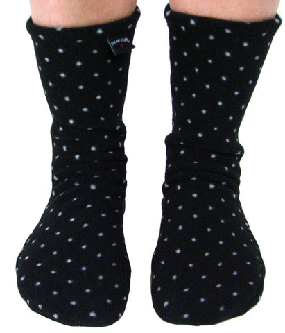 Velvety black fleece with little white dots. Soft, warm and cozy.