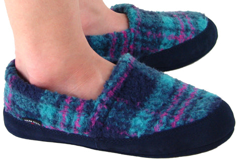 Our new Peacock Plaid Perfect Mocs„ combine the exotic with the practical. Gorgeous jewel tones plus a surprising hot pink footbed! They're soft, they're comfy warm, and the colors are beautiful!